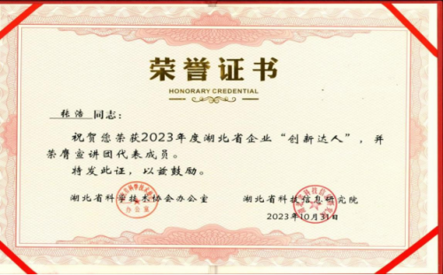 張浩同志榮獲2023年湖北省企業(yè)“創(chuàng)新達(dá)人”稱號(hào)